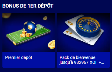 Bonus de 1er dépôt. Il existe deux types de récompenses, qui concernent exclusivement les nouveaux joueurs. Quelle que soit votre préférence (sport ou casino), tout le monde trouvera ce qu'il cherche ici.